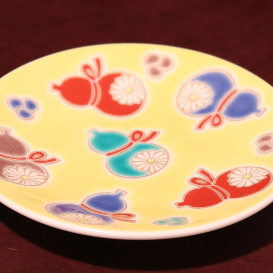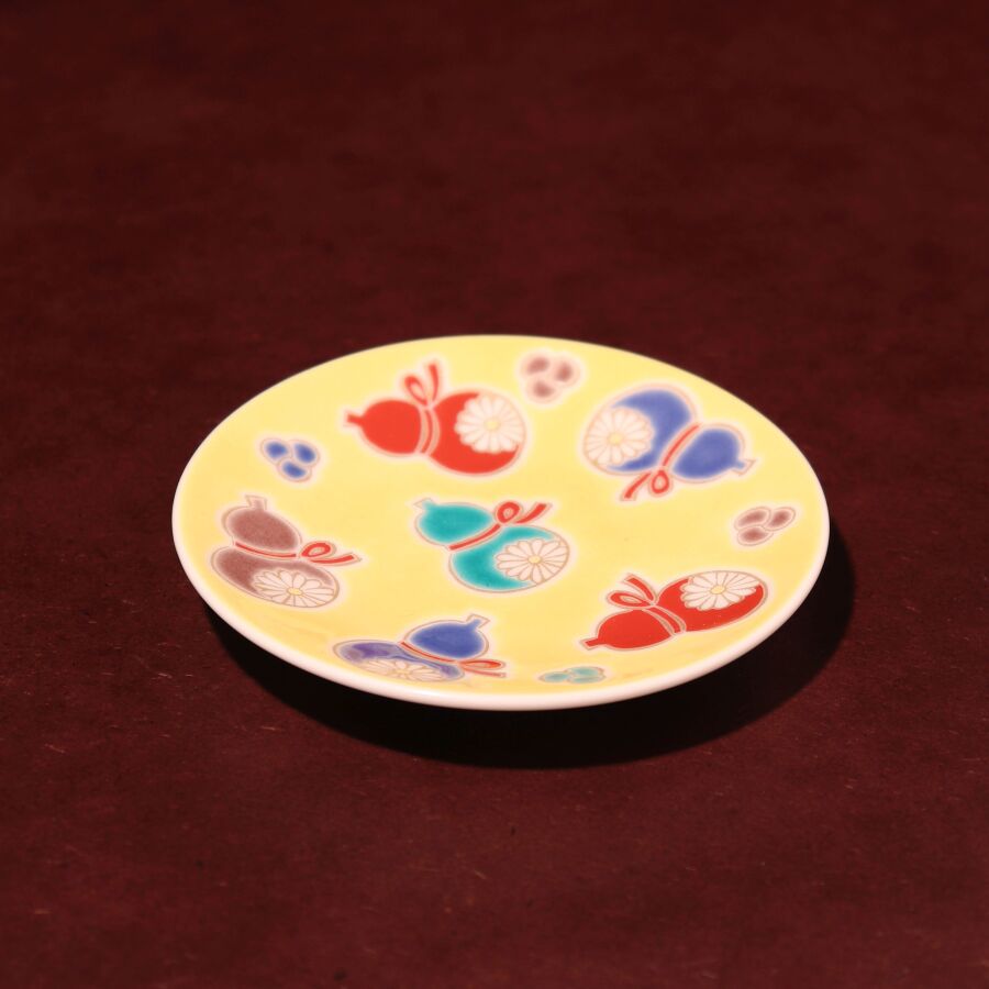 九谷焼豆皿 古九谷色絵亀甲牡丹蝶文