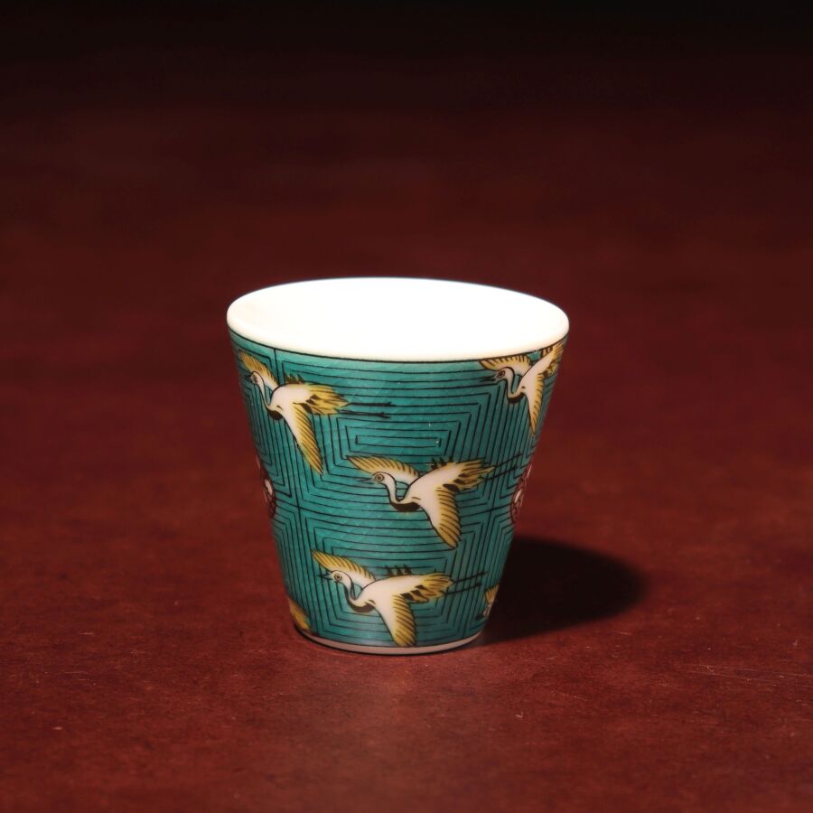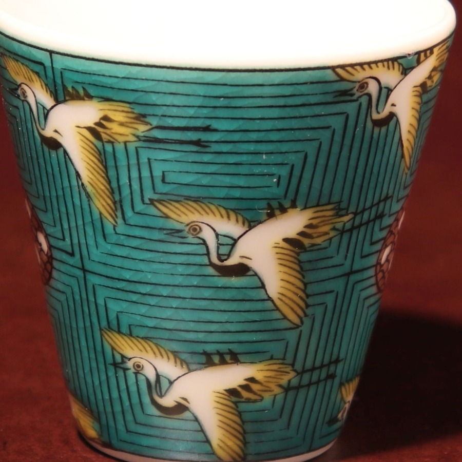 九谷焼フリーカップ 青手鶴かるた文