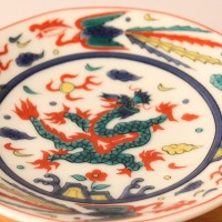 九谷焼豆皿 万歴五彩龍