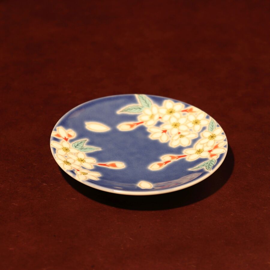 九谷焼豆皿 古九谷木瓜ちらし山水図